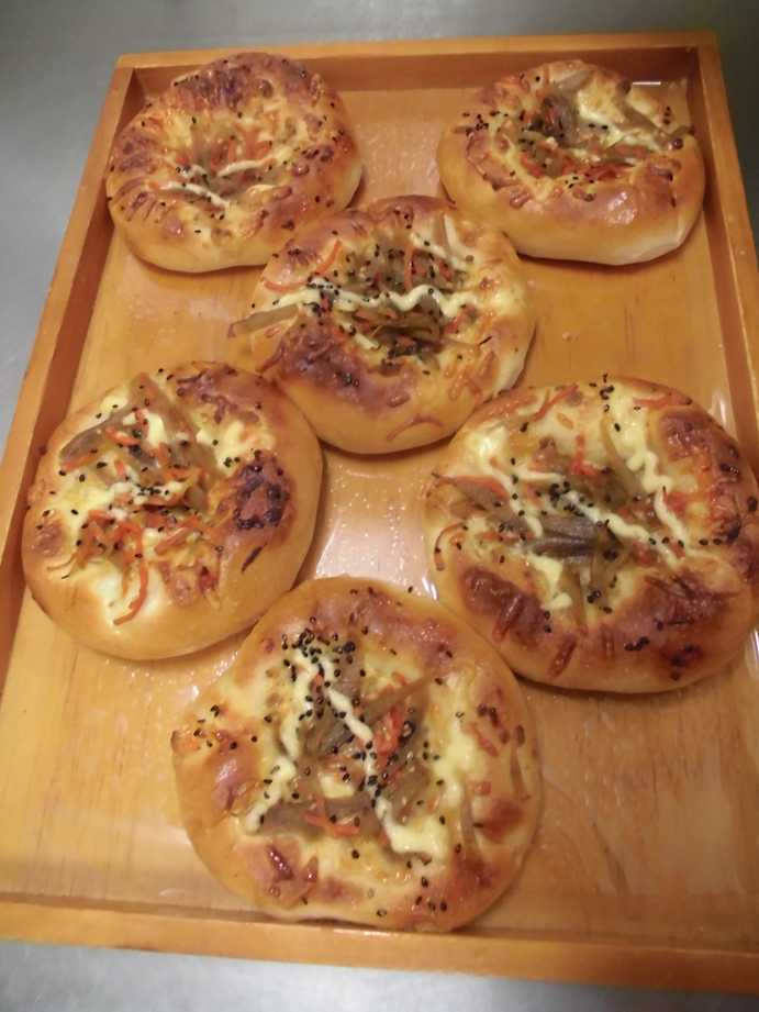ソフトな生地に、肉そぼろとごぼう入りのフィリングを乗せ、