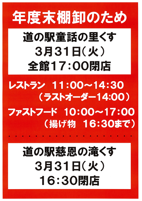 *重要*3月31日(火)営業時間変更のお知らせ