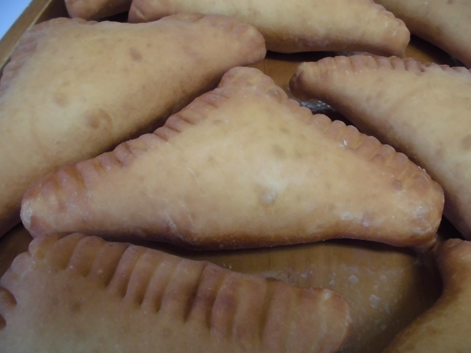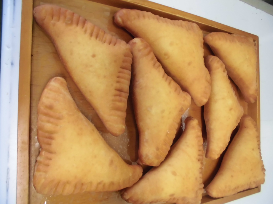 チーズフィリングを絞り、三角形に成形したドーナツです。