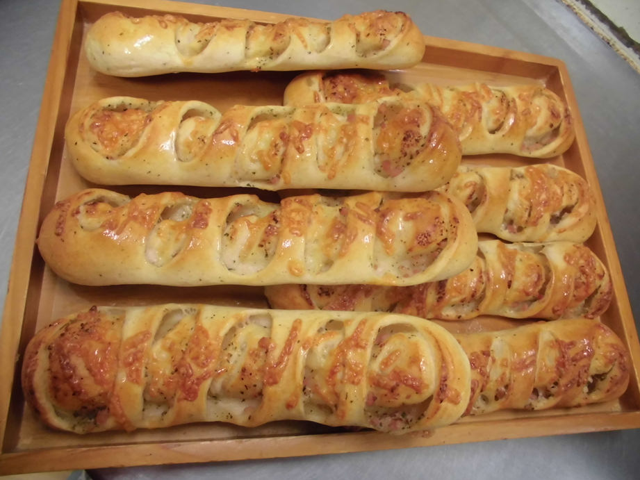 ベーコンを混ぜたフィリングを包み焼き上げました。